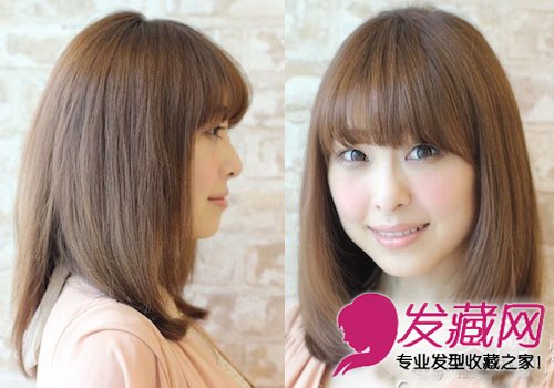 圆脸长直发 发型小清新女生必备齐刘海长直发发型