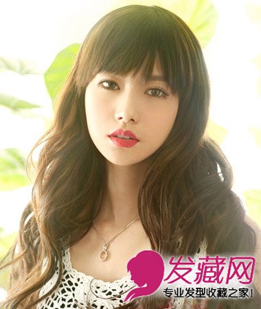 齐刘海浅棕色中长卷发发型,轻松展现出一种甜美时尚感,浅棕色发色更是潮流,两颊卷卷发尾,流露出淑女气质。