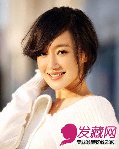 大圆脸适合发型推荐 微卷的斜刘海搭配蓬松的短发烫发