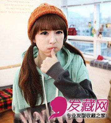 双马尾是萌妹子的最爱,轻薄的齐刘海遮盖额头,修饰出娇小的脸蛋,突出水润迷人的双眸,搭配一顶线帽,更加甜美吸晴。