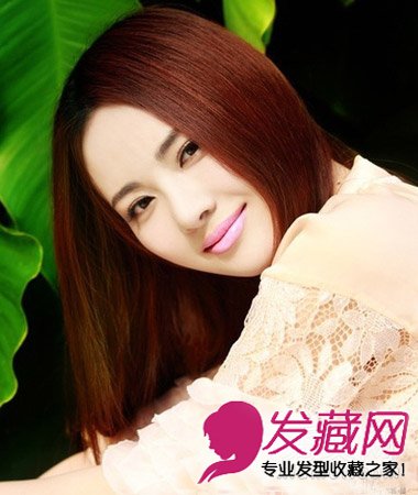 红棕色的染发历来是很衬肤色的,最显肤白红润有气质,中分的垂顺长发搭配这款染发颜色,倍添时尚气息。