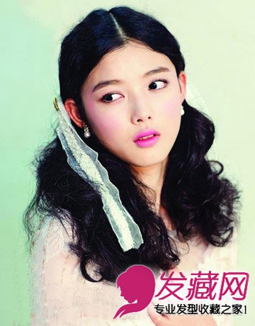 ,中分设计瘦脸效果极佳,蓬蓬的卷发发髻搭在脸颊旁,粉嫩的脸蛋,尽显萝莉纯美气质。