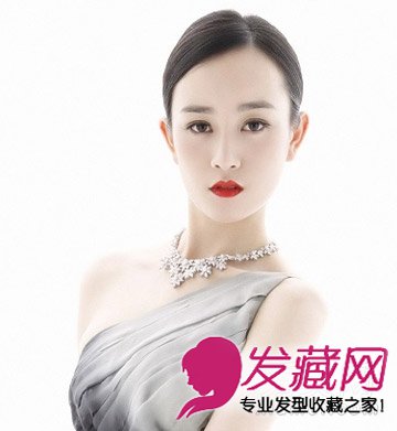 低扎的马尾造型,梳理的自然利落的中分发髻,大气优雅打造完美脸型,斜肩礼服名媛感十足。