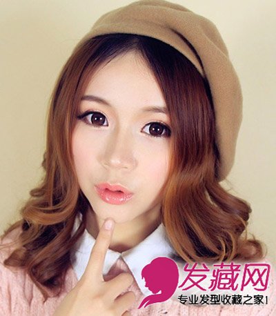 水嫩的妆容,几分诱人的魅力!中长的梨花卷发,活泼又显可爱,气质的中分刘海搭配小毛呢帽,又是一组女生最爱的潮流时尚搭配组合。