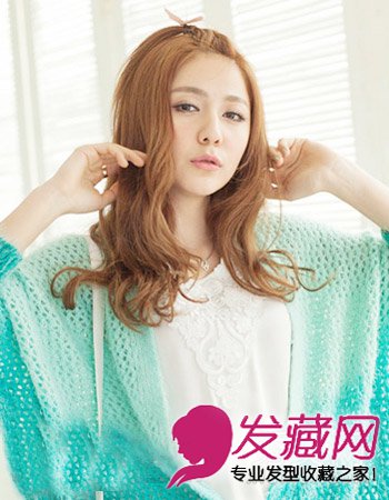 肉肉脸的你可以把额头露出来,娇俏的肤色,棕色是如此相衬,刘海夹起来,利用两侧的中卷发一样最直接的起到挡脸的效果。