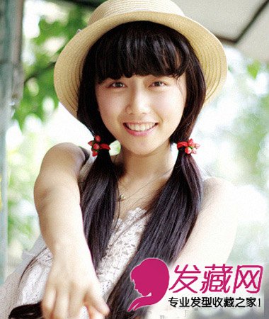 可以选择打理这样一款简单扎发,低扎双马尾收拢发丝清爽,搭配弧度感刘海,甜美修颜。