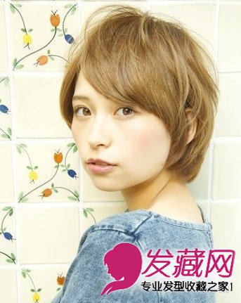 将侧刘海剪出修饰脸型的内扣造型牢牢将脸型修饰起来,搭配上浅亚麻色的