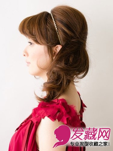 脑后的头发扭转后轻轻向前推出发包,修饰得头型更加饱满。
