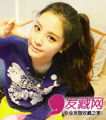 这款干净清爽的韩式无刘海马尾辫也很适合鹅蛋脸女生尝试,蓬松长卷发扎露额高马尾,甜美显活力。