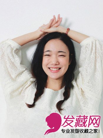 编上两个麻花辫,田园少女气息,松散的发髻在中分