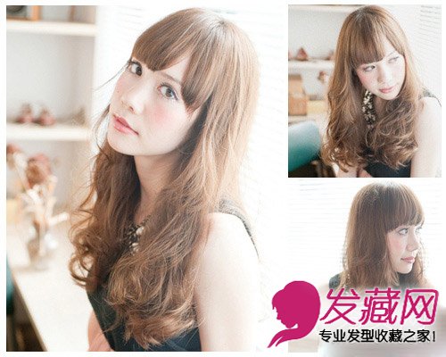 编辑点评:时尚的棕色长卷发吸睛力十足,侧分齐刘海拉伸脸部线条,让圆脸的轮廓变得柔和自然。