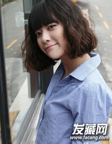 这款娇俏感十足的韩式蛋卷头发型,给人一种清新扑面的萌感,两颊蓬蓬的发丝轻松遮住两颊,搭配齐刘海,减龄感十足。