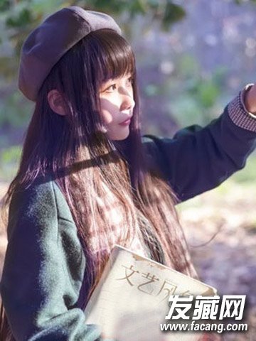 圆脸女生发型设计 清新甜美的斜刘海长直发发型