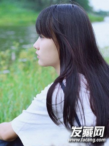 圆脸女生发型设计 清新甜美的斜刘海长直发发型