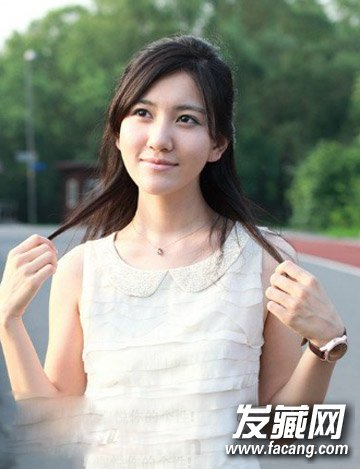 对于喜欢走甜美路线的女生,长发可以受用,披肩的黑色长发不加修饰,最适合学生了,简洁的斜刘海纯粹大方,半扎的公主头多了一些娴静之气。