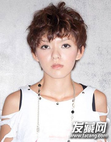 最后是一款时尚帅气风的圆脸女生适合的短发发型,利用的是凌乱蓬松的纹理烫短发设计,而清爽的短发造型与时尚的咖啡色染发相搭更是魅力吸睛。