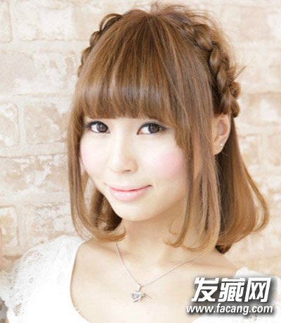 这款造型十分适合齐刘海的圆脸,韩式的扎发一直是很多女生的喜好。齐刘海也是经典配圆脸之一哦。