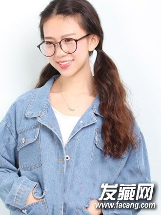 的设计,清爽的露额发型的设计与双马尾搭配起来,搭配上眼镜很显文艺女生气质,中分的造型简单大方。