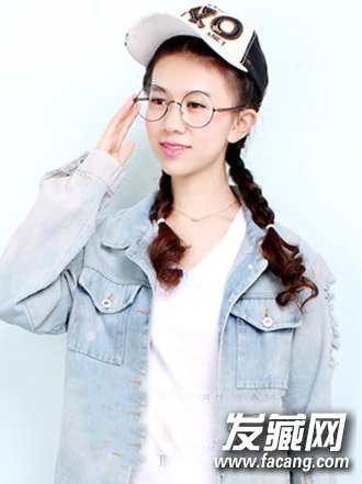 甜美清爽的双麻花辫编发发型,清爽的露额发型与帽子的搭配显露出无比的时尚与个性来,而且发尾的小卷很显气质感,整个造型优雅十分。