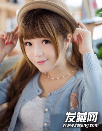 不知道如何处理鬓发的MM们可以学一下,这种平刘海与双马尾搭配起来,不仅显露出可爱呆萌的一面来,而且整个造型完美的勾勒出时尚感。