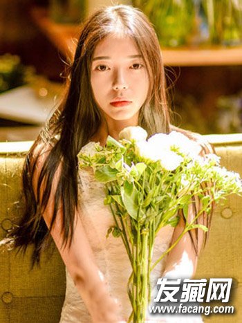 女人味十足的一款韩式圆脸发型设计,中分的蓬松长发搭配挑