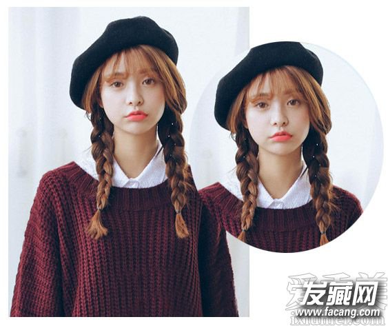 可爱的双麻花辫发型,甜美的空气刘海与编发显露出别具一格的森女气质来,而且搭配上帽子甜美十分,勾勒出小清新范来。