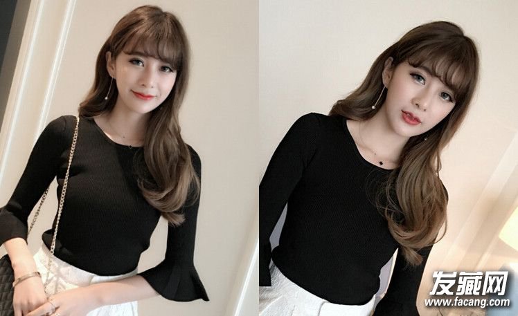 圆脸适合斜刘海发型,加点卷发效果会更好。斜刘海有很棒的修颜功效,而且斜刘海不对称的感觉能削弱圆脸效果,达到瘦脸效果。