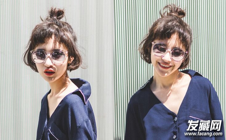 四六分的斜刘海能完美地把圆脸变得修长,侧边的刘海能够非常自然地修饰面部曲线,而刘海和整体的造型搭配起来更显甜美优雅,也是不错的选择之一喔。