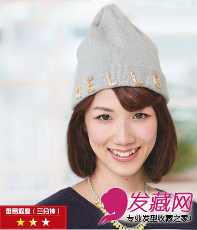 及肩波波头时尚甜美,保暖一步到位。搭配立体的毛线帽,甜美感十足。