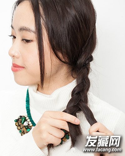 step2:将头发拉扯到左侧后编成辫子就好了。