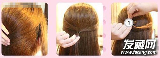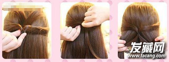 第二步:将两缕发束都拉到后方,并用黑色的小发卡固定在一起。