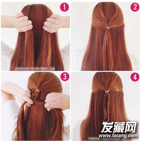 STEP 1:将脸颊两侧的头发聚拢在脑后,注意不要带上脑后的头发。