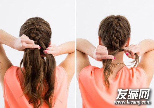 9.一旦你到一个地步,没有更多的头发拉进你的辫子,你就将剩余的头发简单地编织在一个传统的辫子。