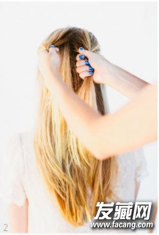 在头顶部位选择两撮头发,以左搭右的方式搭住