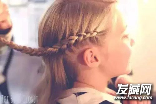 从侧边分出一股头发,用三股辫的编至耳后开始用麻花辫。