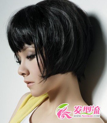 BOB头很适合职场OL,彰显出现代女性独立、自信和坚强的个性特质。大片的斜刘海拨至眼角,连结利落修剪效果的发尾,即使是黑色发型也能呈现出轻盈感。干净的裸妆搭配清爽的短发,恬静的笑容绽放出女性温婉娴静的姿态。
