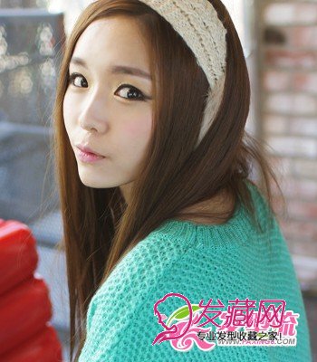 柔软的发质很适合长发直发造型,可以突显出女性的柔美气质,让秀发充满飘逸的感觉。中分发 型显现出MM的精致轮廓,两侧秀发起到稍加掩饰颧骨的效果。利用宽发带点缀发型,可以解决让风吹 乱秀发打结的烦恼,还能增加造型度。