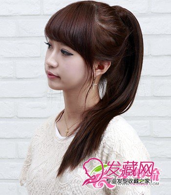 利用长发直发扎出造型,是一个不错的选择!顺直的发丝拥有最优美的线条,高高挽起的长发让女生更多了份俏皮、活泼的个性,顺直的刘海发梢做出略显倾斜的弧度,让五官看起来会更立体。余留几缕额际垂落的发丝,修饰脸型的同时更添妩媚气质。
