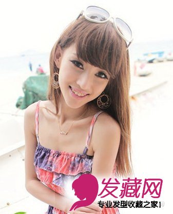 的随肩散落,尽显都市女性的时尚与休闲气质,斜刘海的发型设计,凸显出女生极具立体感的五官,搭配清爽长裙,非常适合去海边游玩。