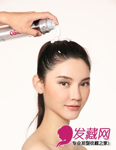 2.在头顶处使用摩丝。如果不想要这种光滑的效果,就可以把头顶处倒刮,弄的蓬松些