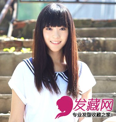 最具校园气息的齐刘海直发发型,齐肩直发,可爱的的齐刘海deqiliuh配上很有日式风情的水手服校服,校园女生就是这样了。