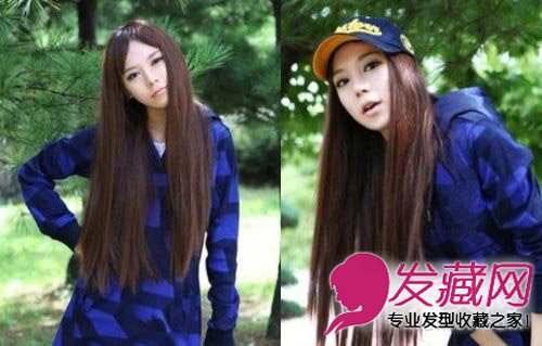 小编点评:将刘海中分,更有女神气质,长及腰的发丝自然垂顺,戴上一顶鸭舌帽更加活力十足。