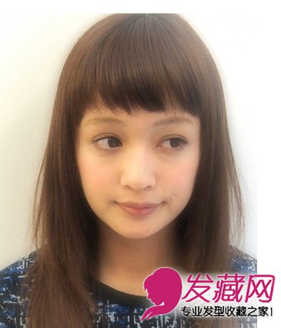 这款齐刘海长直发发型,亚麻色的发丝,修颜减龄。