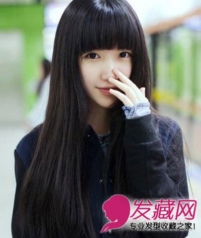 属于恬静范的女生发型,超长的直头发,唯美般地呈现出完美眼前,搭配整齐的刘海设计,几分清纯、几分气质淑女气息。