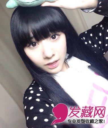 呆萌能感十足的齐刘海直发,萌妹纸必学的清新修颜发型,齐刘海搭配披肩发轻松藏住胖圆脸,甜美可人。