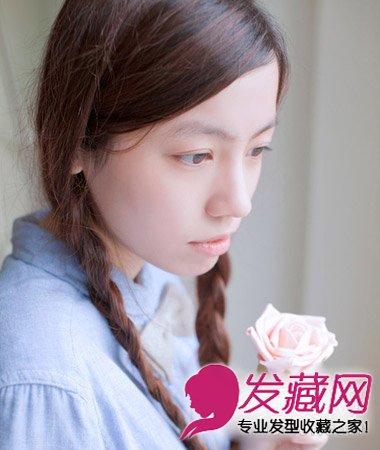 的发丝扎双麻花辫,斜刘海鬓发自然垂落修颜,甜美淑女。