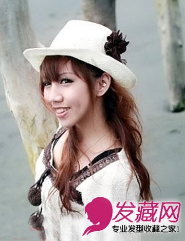 这款简洁的头发,打理成棕色的发色,时尚又显清新,平刘海,修颜效果不错吧,甜美的笑脸,搭配时尚的帽子,如此萌妹子,好想抱回家哦。