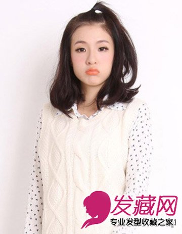 可爱甜美范的造型可不只是波波头的专属,这款中短发直发扎发发型也很显小女生的俏皮可爱感哦,头顶一束头发扎成一个小马尾的造型配合清新自然的直发更显小女生的青春活力感。