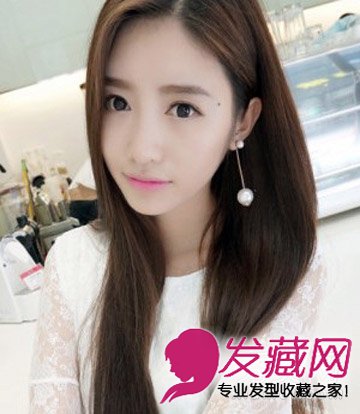 小清新MM必备的韩式长直发,简单大方的长直发挑染棕色更显肤白,搭配侧分修颜,小圆脸也可以很可爱很清纯哦!