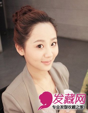 ,无刘海式的花苞头发型,配合一件职场正装可爱中又凸显出一丝的成熟感哦。